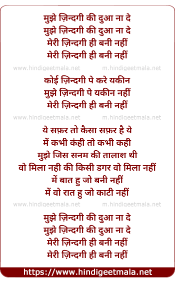 Lyrics of Mujhe Zindagi Ki Dua Na De (Sad)