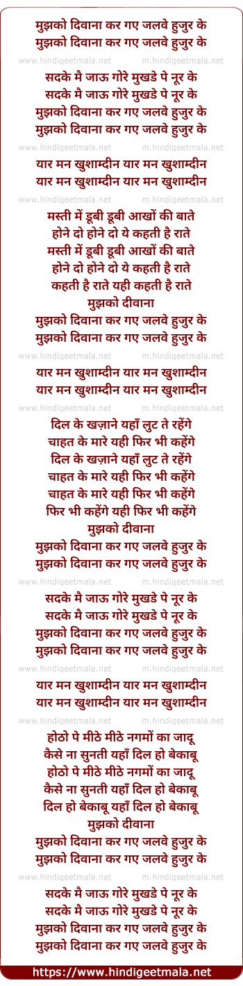 Lyrics of Mujhko Diwana Kar Gaye - मुझको दिवाना कर गये