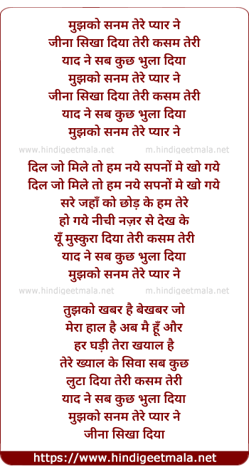Lyrics of Mujhko Sanam Tere Pyar Ne - मुझको सनम तेरे प्यार ने