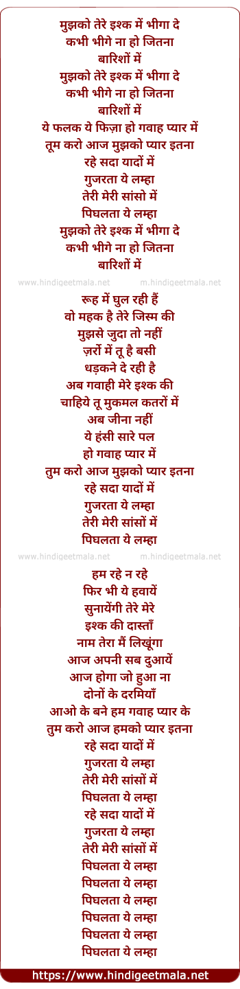 Lyrics of Mujhko Tere Ishq Me Bhiga De - मुझको तेरे इश्क में भीगा दे