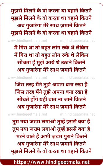 Lyrics of Mujhse Milne Ke Wo Karta Tha Bahane - मुझसे मिलने के वो करता था बहाने कितने