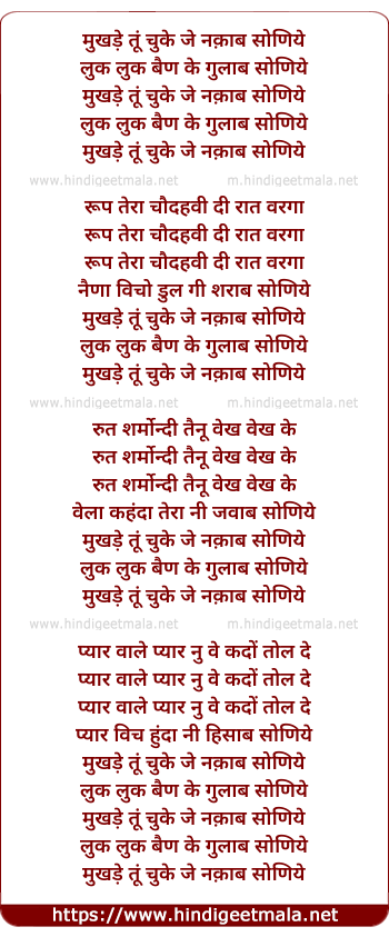 Lyrics of Mukhde Tun Chuken Je - मुखड़े तूं चुके जे नक़ाब सोणिये