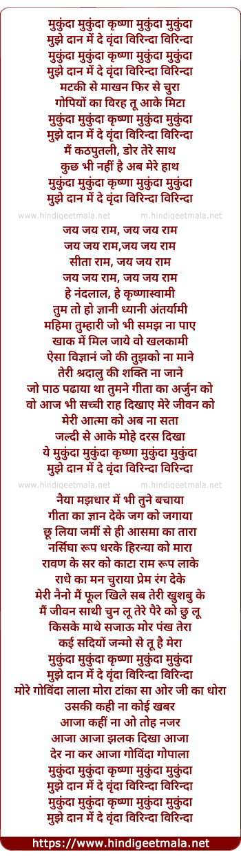 Lyrics of Ye Mukunda Mukunda Krishna Mukunda Mukunda - ये मुकुंदा मुकुंदा कृष्णा मुकुंदा मुकुंदा