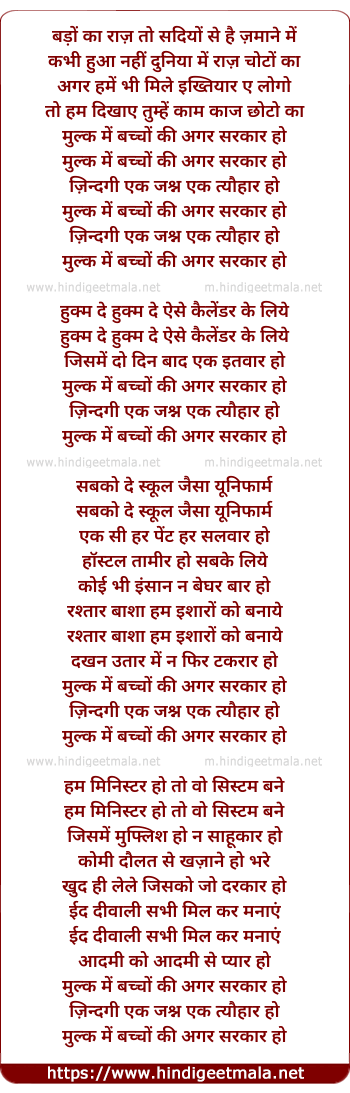 Lyrics of Mulk Me Bachcho Ki Gar Sarkar Ho - मुल्क में बच्चों की अगर सरकार हो
