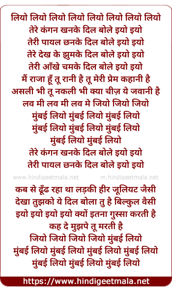 Lyrics of Mumbai Liyo Mumbai Liyo - मुंबई लियो मुंबई लियो
