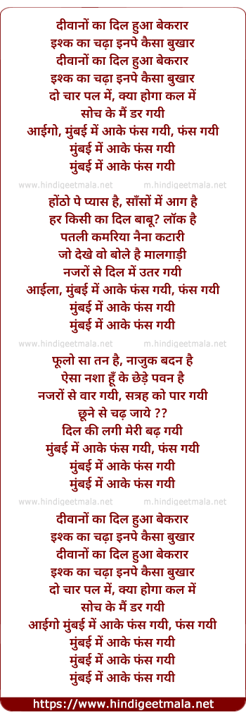 Lyrics of Mumbai Mein Aake - मुंबई में आके