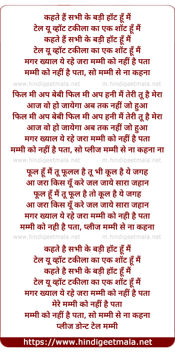 Lyrics of Mummy Se Naa Kehna - मम्मी से ना कहना