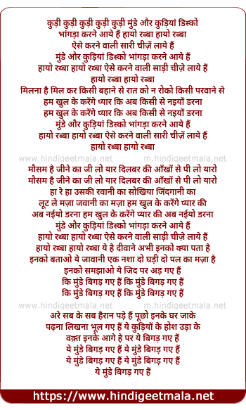 Lyrics of Munde Aur Kudiyaan Disko Bhaangadaa Karne Aaye Hai - मुंडे और कुड़ियां डिस्को भांगड़ा करने आये हैं