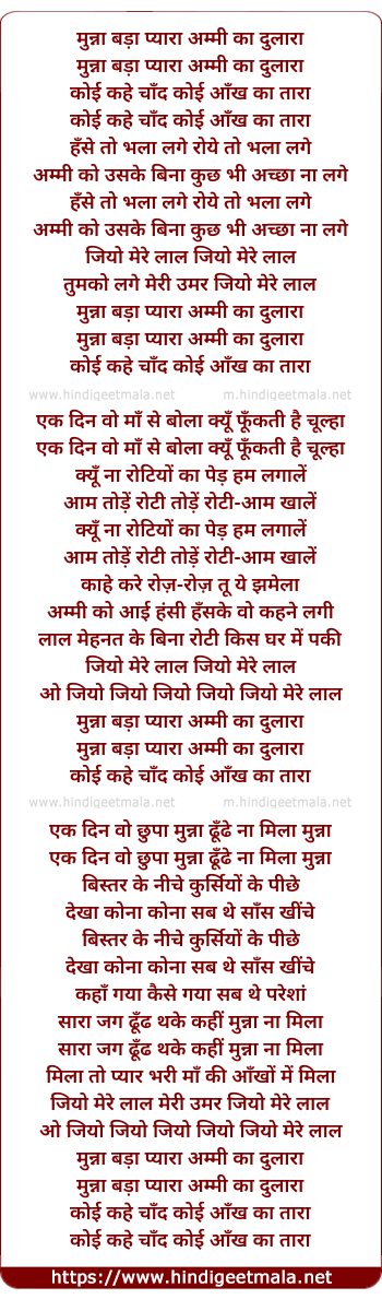 Lyrics of Munnaa Badaa Pyaaraa Ammi Kaa Dulaaraa - मुन्ना बड़ा प्यारा अम्मी का दुलारा