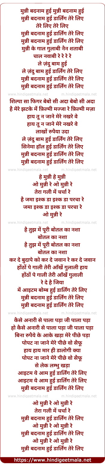 Lyrics of Munni Badnaam (Remix) - मुन्नी बदनाम हुई मुन्नी बदनाम हुई
