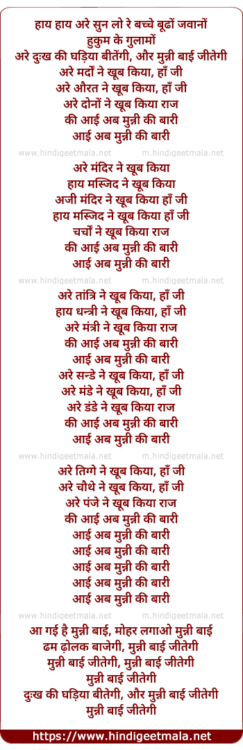 dukh ki ghadiya bitengi, aur munni bai jitegi