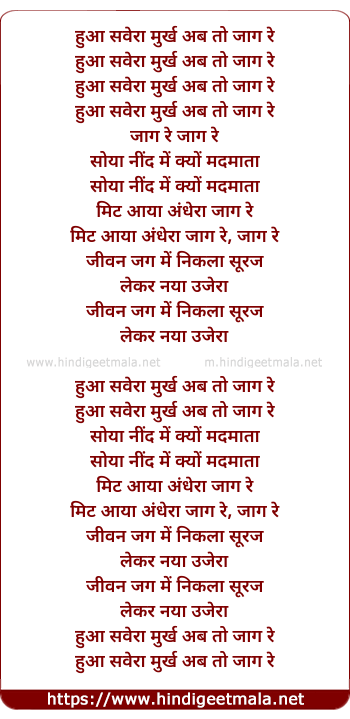 Lyrics of Murakh Ab To Jaag Re - हुआ सवेरा मुर्ख अब तो जाग रे