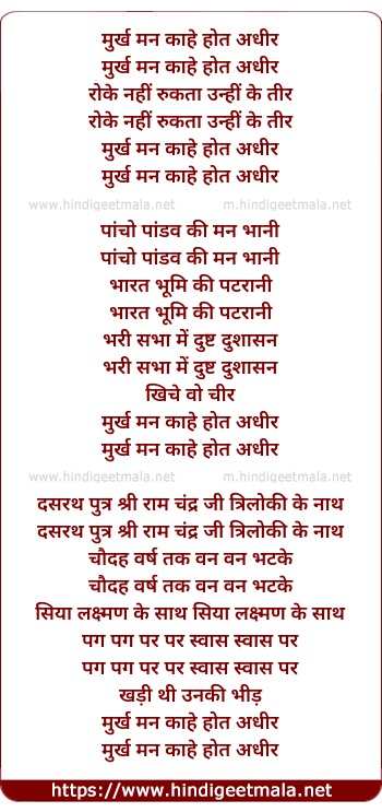 Lyrics of Murakh Man Kahe Hot Adheer - मुर्ख मन काहे होत अधीर