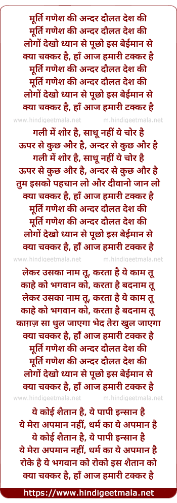 Lyrics of Murti Ganesh Ki Andar Daulat Desh Ki - मूर्ति गणेश की अन्दर दौलत देश की