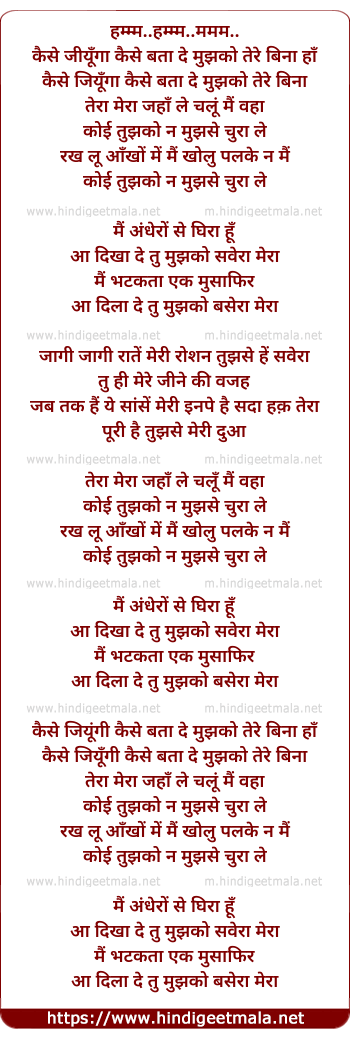 main bhatakta ek musafir aa dila de tu mujhko basera mera