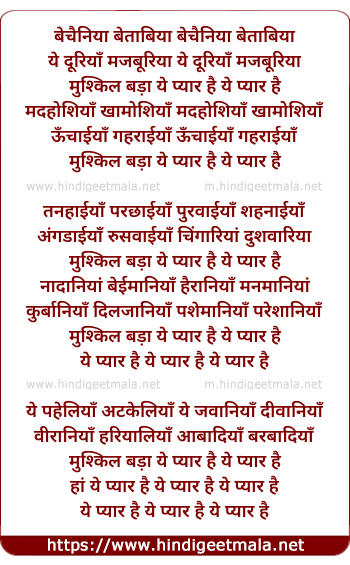 Poetic Translation - Lyrics of Mushkil Bada Ye Pyar Hai - मुश्किल बड़ा ये प्यार है