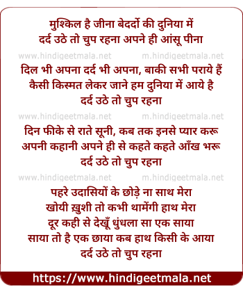 Lyrics of Mushkil Hai Jina Bedardo Kee Duniya Me - मुश्किल है जीना बेदर्दो की दुनिया में