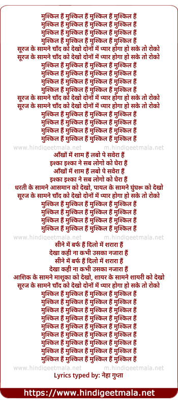 Lyrics of Mushkil Hai Mushkil Hai - मुश्किल हैं मुश्किल हैं
