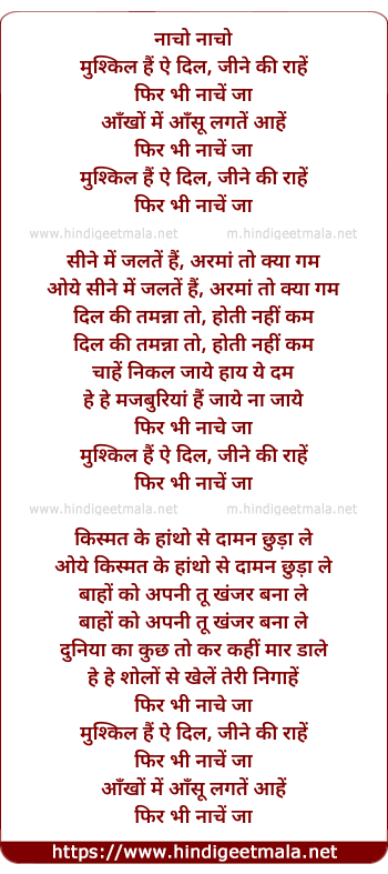 Lyrics of Mushkil Hai Ae Dil Jeene Ki Raahe - मुश्किल हैं ऐ दिल जीने की राहें