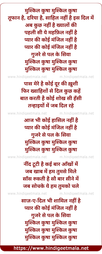 Lyrics of Mushkil Kushaa - मुश्किल कुषा