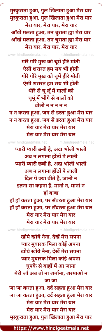 Lyrics of Muskuraataa Huaa Gul Khilaataa Huaa Meraa Yaar - मुस्कुराता हुआ, गुल खिलाता हुआ मेरा यार