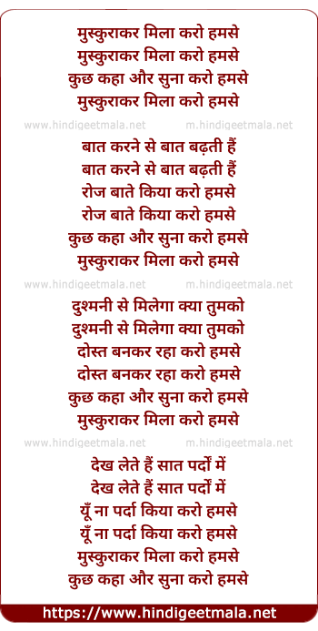 Lyrics of Muskurakar Mila Karo Humse - मुस्कुराकर मिला करो हमसे