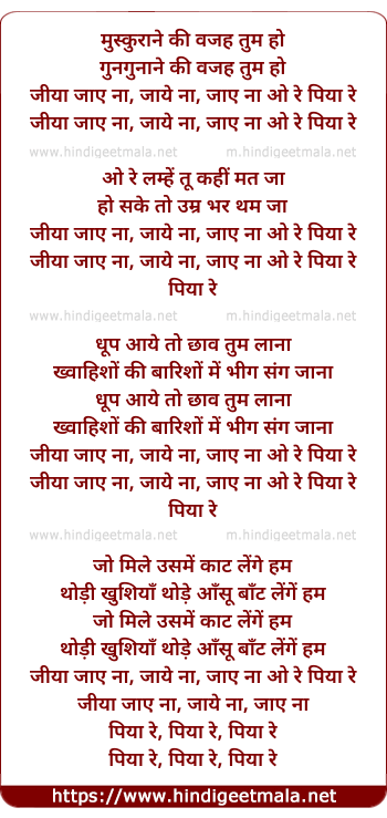 jiya jaaye na, jaaye na, jaaye na o re piya re