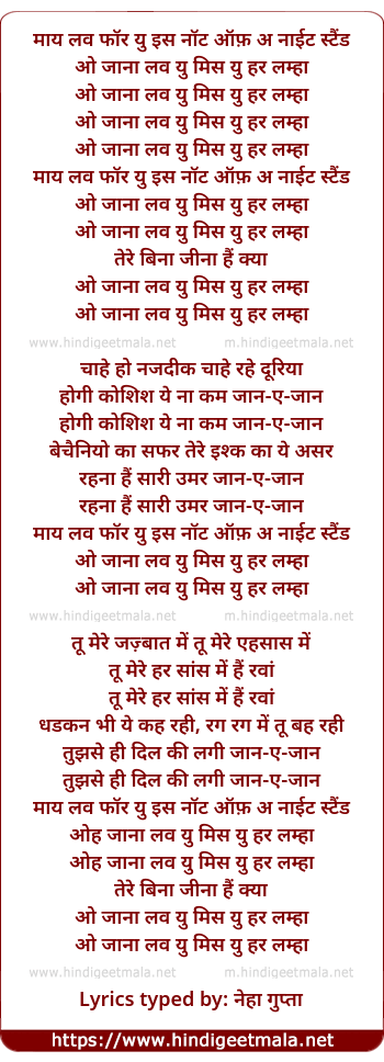 lyrics typed by: neha gupta