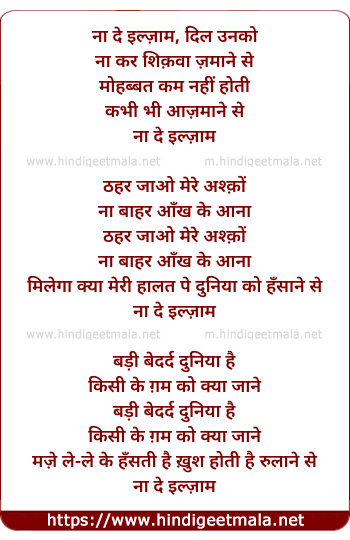 Lyrics of Na De Ilzaam Dil Unko - ना दे इल्ज़ाम, दिल उनको
