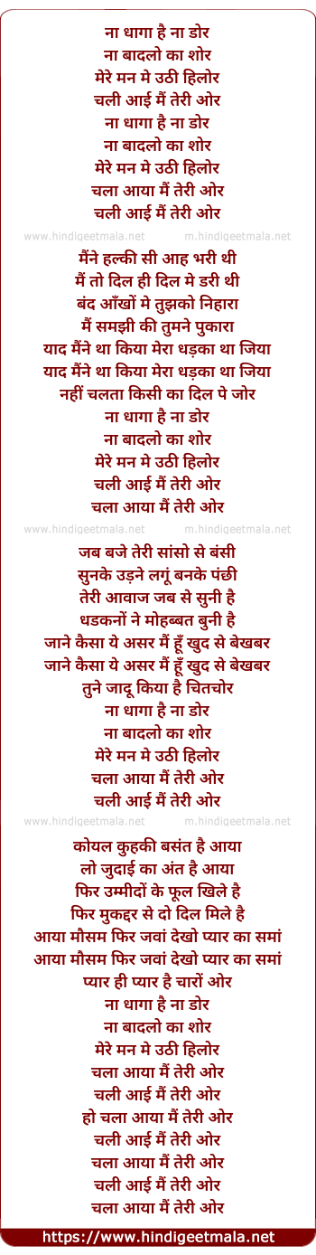 Lyrics of Na Dhaga Hai Na Dor - ना धागा है ना डोर