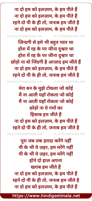 Lyrics of Na Do Hum Ko Ilzam - ना दो हम को इलज़ाम