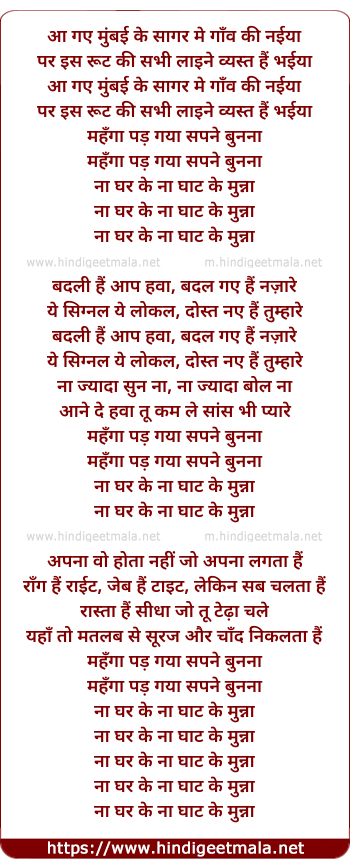 Poetic Translation - Lyrics of Na Ghar Ke Na Ghaat Ke (Remix) - आ गए मुंबई के सागर मे गाँव की नईया