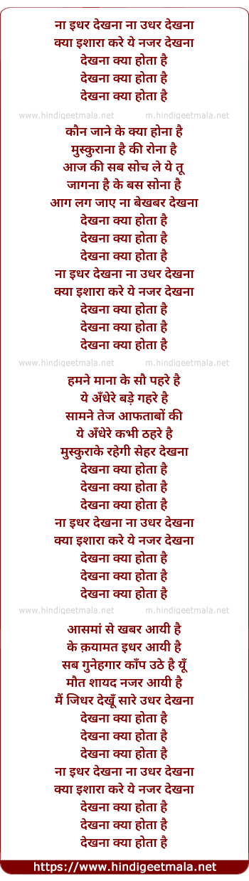 Lyrics of Na Idhar Dekhna Na Udhar Dekhna - ना इधर देखना ना उधर देखना
