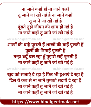 Lyrics of Na Jaane Kaha - ना जाने कहाँ हाँ ना जाने कहाँ