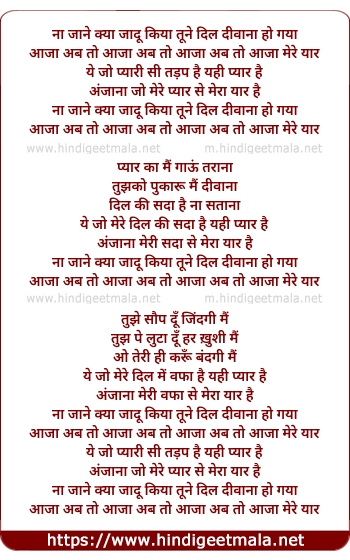 Lyrics of Na Jane Kya Jadu Kiya (2) - ना जाने क्या जादू किया तूने दिल दीवाना हो गया