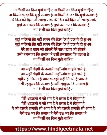 Lyrics of Na Kisi Ka Dil Mujhe Chahiye - ना किसी का दिल मुझे चाहिए