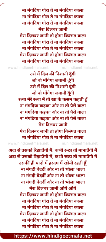 Lyrics of Na Mangdiya Gora - ना मंगदिया गोरा