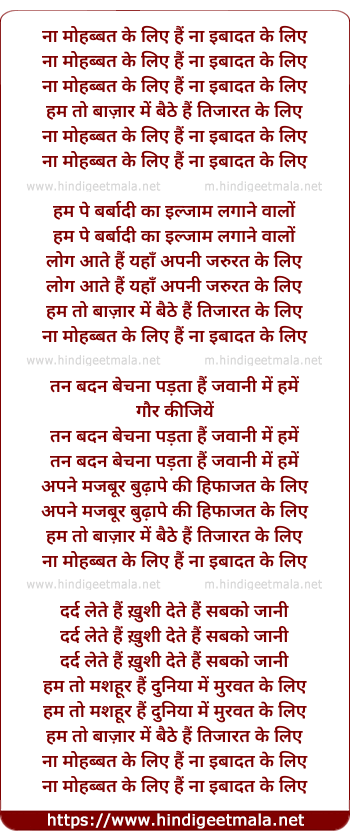 Lyrics of Na Mohabbat Ke Liye Hai Ibadat - ना मोहब्बत के लिए हैं इबादत