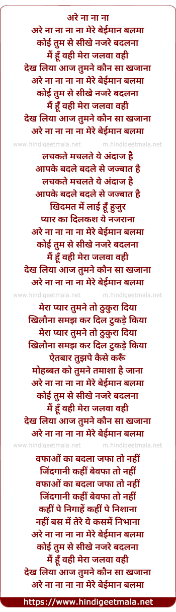 Lyrics of Na Na Mere Beimaan Balma - ना ना मेरे बेईमान बलमा