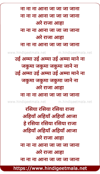 Lyrics of Na Na Na Aana - ना ना ना आना