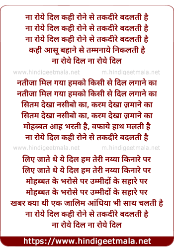 Lyrics of Na Roye Dil Kahin Rone Se - ना रोये दिल कही रोने से