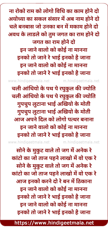 Lyrics of Na Roko Ram Ko Logon - ना रोको राम को लोगो