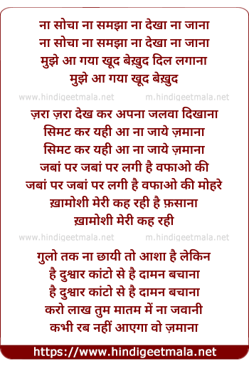 Lyrics of Na Socha Na Samjha Na Dekha - ना सोचा ना समझा ना देखा