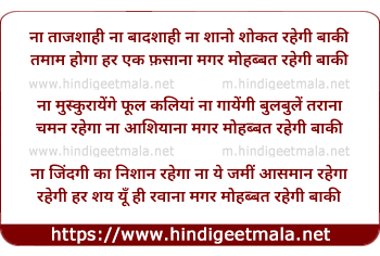 tamam hoga har ek fasana magar mohabbat rahegi baki