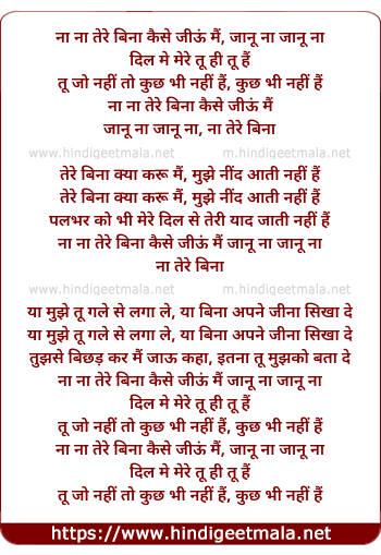 na na tere bina kaise jiu mai, janu na janu na