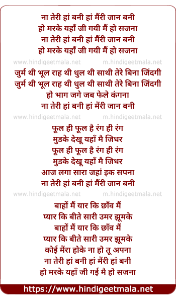Lyrics of Na Teri Ha Bani - ना तेरी हां बनी