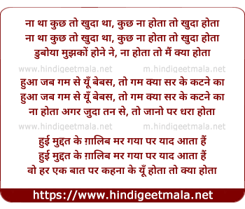 Lyrics of Na Tha Kuch To Khuda Tha - ना था कुछ तो खुदा था
