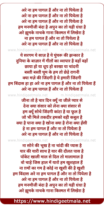 Lyrics of Na Hum Pagal Hain - ना हम पागल हैं