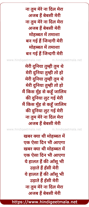 Lyrics of Na Tum Mere Na Dil Mera - ना तुम मेरे ना दिल मेरा