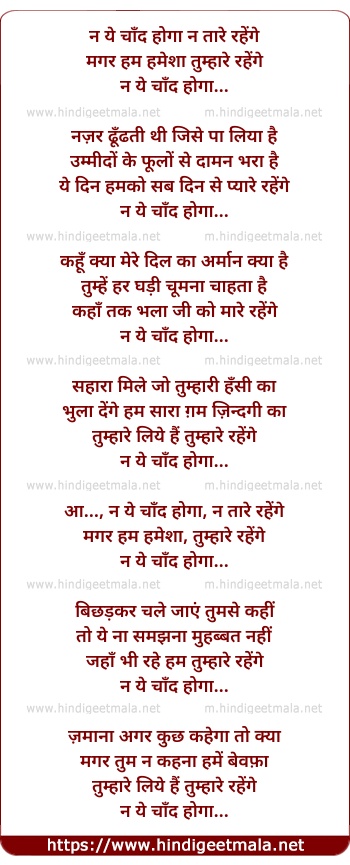 hoga na tare Rahenge Magar Hum Hamesha tumhare Rahenge